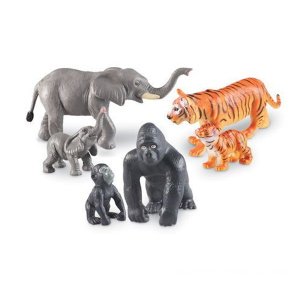 В набор входит шесть, детально проработанных и тщательно прорисованных фигур: горилла и детеныш, слон и слоненок,тигр и тигрёнок.