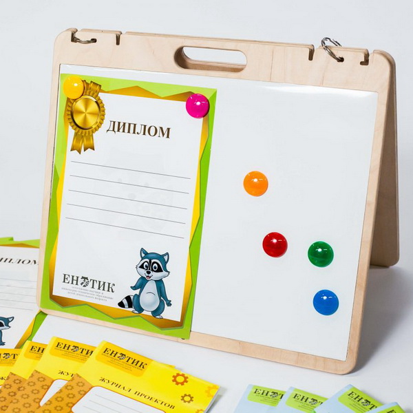 Комплект №4 "Прогрессор проекта" Предназначен для визуализации целей, этапов, ресурсов проекта. В составе комплекта: Интерактивное выводное устройство для визуализации информации о состоянии проекта, содержащее интерактивные ресурсы по сопровождению проекта, обеспечивающее отображение индикации сроков выполнения проекта, его основных стадий, позволяющее оценивать критерии его успешности с учетом ресурсов и рисков - 1 шт; планшет для самостоятельной работы - 6 шт; стенд комбинированный магнитно-пробковый для размещения информации - 1 шт; Габаритные размеры стенда: длина 420 мм, ширина 297 мм, высота 80 мм; журнал проекта дошкольника - 6 шт. Формат А5. храниться в папке.