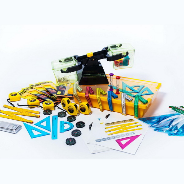 В состав комплекта входят: линейки - 6 шт., рулетка 6 шт, складной метр 6 шт., ростомер с изображением персонажа проекта - 1 шт., весы с разновесами - 6 шт.; весы электронные - 1 шт., безмен (динамометр) - 6 шт., термометр электронный 1 шт., комплект карточек с заданиями - 1 компл.; компас - 6 шт.; карточки-схемы 1 комплекта. Комплект содержит 2 карточки по каждому измерительному прибору.
